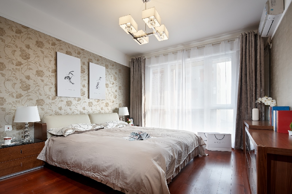 1:挂在卧房中的画不宜过大,挂画最好在对面的墙壁上或侧面,以视觉感受为参照来选择高矮位置。